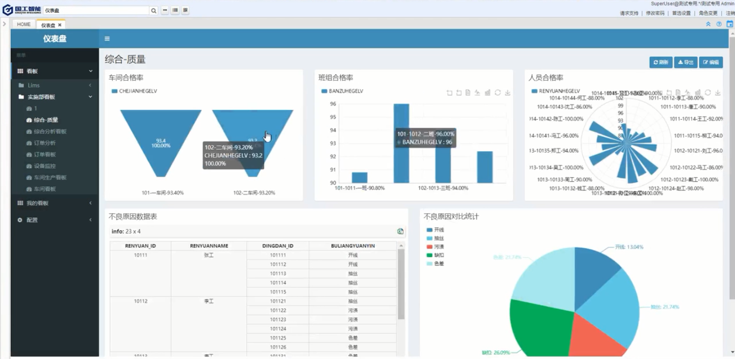 生產(chǎn)數(shù)據(jù)全部存儲(chǔ)在MES系統(tǒng)的數(shù)據(jù)庫(kù)中,任何需求都可以從數(shù)據(jù)庫(kù)中調(diào)取,產(chǎn)品的生產(chǎn)過(guò)程與工單關(guān)聯(lián)后,可以根據(jù)工單號(hào)對(duì)產(chǎn)品做追溯查詢,或者根據(jù)相應(yīng)的關(guān)鍵字段就可以將產(chǎn)品的整個(gè)生產(chǎn)數(shù)據(jù)都調(diào)取出來(lái)。引入國(guó)工的大數(shù)據(jù)與人工智能平臺(tái)后,可以對(duì)產(chǎn)品的整個(gè)生產(chǎn)過(guò)程所產(chǎn)生的數(shù)據(jù)做分析,找到產(chǎn)品配方的最優(yōu)配比或者產(chǎn)品穩(wěn)定度最高的工藝參數(shù)設(shè)置值等;還可以根據(jù)產(chǎn)品的數(shù)據(jù)做出各種圖形化報(bào)表,分析報(bào)表,便于直觀的展示產(chǎn)品的各種數(shù)據(jù),使數(shù)據(jù)的利用率達(dá)到最高。